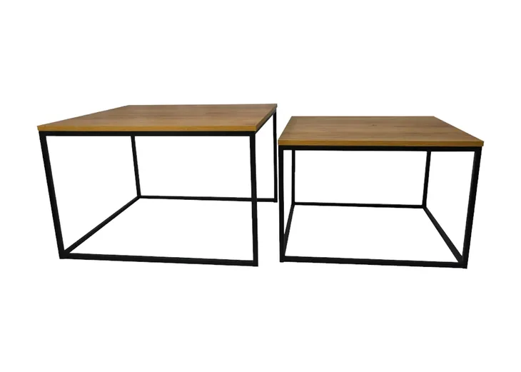 Komplet stolików 2w1 w stylu loftowym stanowi doskonałe rozwiązanie dla nowoczesnych wnętrz. Oferujemy dwa kwadratowe stoliki, nie tylko idealnie uzupełniające wyposażenie salonu czy biura, ale również umożliwiające zorganizowanie przestrzeni poprzez wsuwanie mniejszego stolika pod większy. Blaty o grubości 2,2 cm są wykonane w całości z trwałej płyty laminowanej, a ich obrzeża oklejone grubą okleiną PCV, co gwarantuje ochronę przed uszkodzeniami.