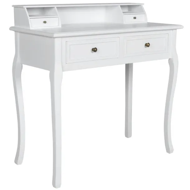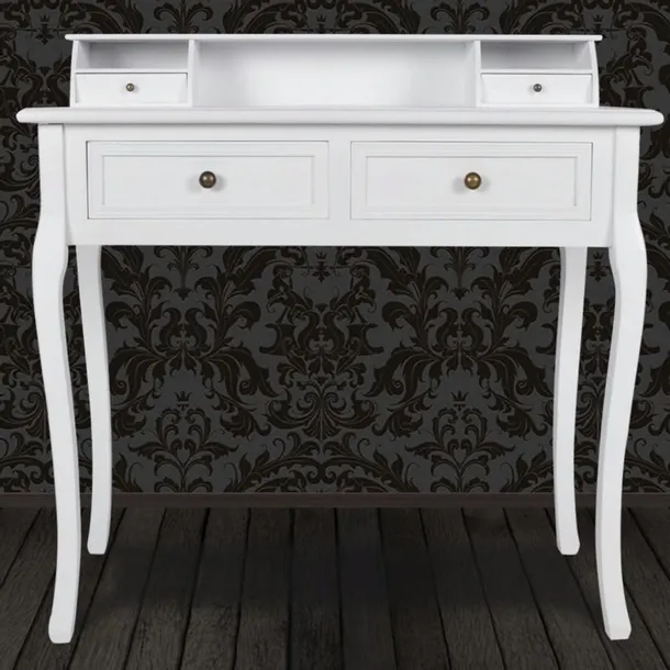 Po obu stronach znajdują się dwie szufladki połączone z blatem, w których możesz przechowywać kosztowności. Ponadto w dolnej części stołu znajdują się dwie pełnowymiarowe szuflady, które zapewniają dodatkową przestrzeń do przechowywania.
