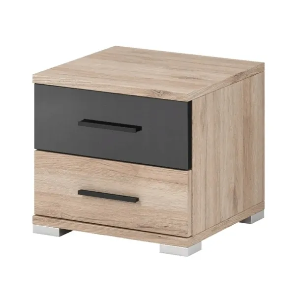 Posiada dwie szuflady. Idealnie nadaje się do nowoczesnej sypialni, praktyczny i funkcjonalny, ponadczasowa stylistyka pozwolą cieszyć się nimi przez wiele lat.