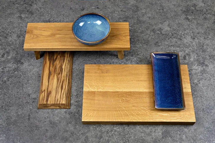 Elementy systemu bufetowego marki VERLO to wysokiej jakości produkty wykonane z litego dębu, impregnowane olejem roślinnym. Naturalne, szlachetne drewno desek, tac będzie świetną bazą dla aranżacji bufetu podawania sushi, przystawek.