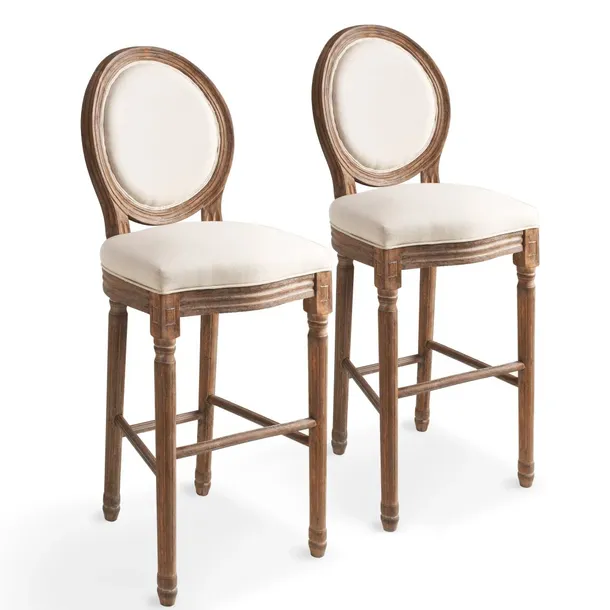 Krzesła barowe z litego drewna o klasycznym wyglądzie roztaczają urok barokowego zabytku, który sprawi, że będą eleganckim dodatkiem do kuchni lub jadalni.