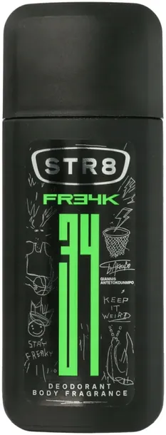 STR8 FREAK - dezodorant zapachowy z atomizerem. STR8 FREAK to zapach, który podkreśli szaleństwo, determinację i pasje kryjące się we wnętrzu męskiego charakteru. Ten zapach pokaże nie tylko to kim jesteś ale również to kim możesz się stać. Podejmij wyzwanie, które niesie ze sobą zapach STR8 FREAK. Pokaż na swój własny sposób, co nadaje Twojemu życiu sens i żyj w pełni. Bądź szalony i rób w życiu to co czyni cię naprawdę szczęśliwym. Opis zapachu: początek zapachu otwierają odważne nuty bergamotki, pieprzu oraz imbiru. Po chwili do głosu dochodzą szałwia muszkatołowa oraz ananas, a trwałość kompozycji zapewniają fasola tonka, bursztyn oraz kakao..