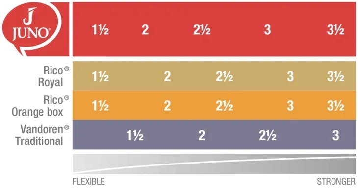 Najczęściej stosowane na świecie stroiki klarnetowe, o potwierdzonej przez lata jakości. Odpowiednie dla wszystkich rodzajów muzyki. Stroiki JUNO są adresowane do osób dopiero uczących się grać, dzięki nim granie od samego początku jest łatwiejsze, sprawia więcej przyjemności i zachęca do dalszej nauki