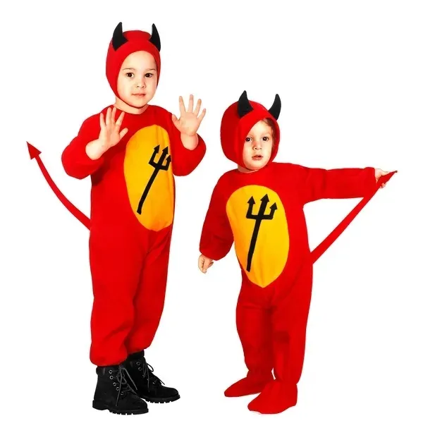 Szeroki wybór strojów dla dzieci i dorosłych, widły, ogony, opaski z rogami, maski.