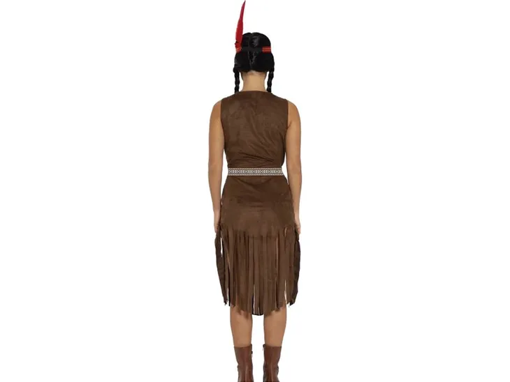 Strój Indianki dla kobiety.W komplecie: brązowa sukienka z frędzlami, pasek i opaska na głowę.Rozmiar: S (36-38).Wykonany z poliestru.