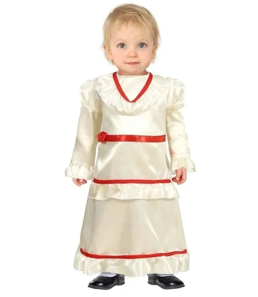 Wzbogać karnawałowy lub halloweenowy look Twojego dziecka dzięki naszemu strojowi małej lalki! Sukienka w delikatnym kremowym kolorze z czerwonymi tasiemkami to połączenie klasyki z nutką oryginalności, idealnie pasujące na różne imprezy tematyczne. Dzięki prostemu, ale efektownemu krojowi, strój małej lalki z pewnością przyciągnie wzrok i doda Twojemu dziecku wyjątkowego uroku!