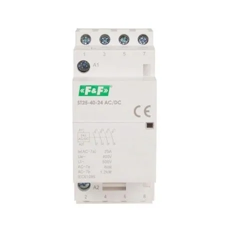 Stycznik modułowy, montaż na szynie, styki 4xNO, 25A, 24V DC ST25-40-24ACDC f&f 5902431672861Stycznik modulowy, montaz na szynie, styki 4xNO, 25A, 24V DC | ST25-40-24ACDC F&F