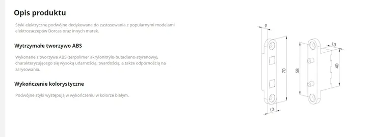 Styki elektryczne podwójne dedykowane do zastosowania z popularnymi modelami elektrozaczepów Dorcas oraz innych marek.
