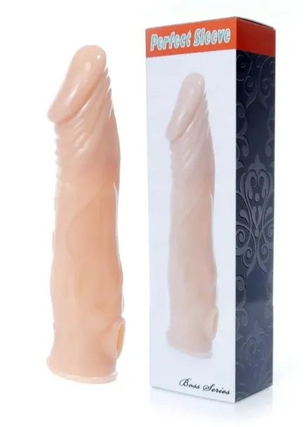 Realistic shaped cap with a hole for testicles. It was made of high-quality cyber leather. Super stretchy, perfectly fitting. With this overlay you will easily lengthen and thicken your penis, thanks to which you and your partner will get even more satisfaction from sex. The natural shape has been profiled taking into account all anatomical details.