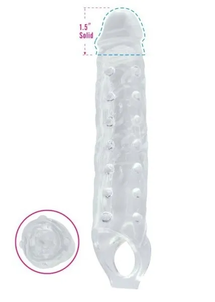 Nakładka przedłużająca z twardą końcówką. Bardzo duży rozmiar: długość 28 cm, średnica 5,5 cm. Miękki i wygodny w użyciu. Bez ftalanów.