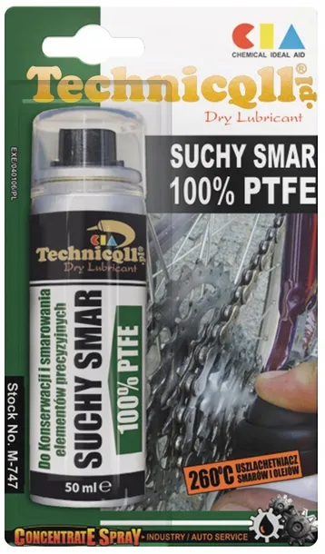 Suchy smar PTFE jest czystym, najwyższej jakości preparatem, zawierającym mikronizowany proszek 100% PTFE. Produkt ten nie ma w swoim składzie żadnych substancji oleistych, które przyciągają osiadanie kurzu, brudu i piasku.