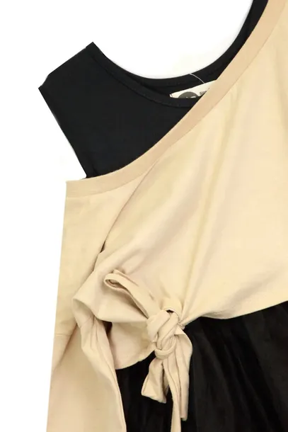 Cudowna, efektowna czarna sukienka tiulowa z beżową bluzką.