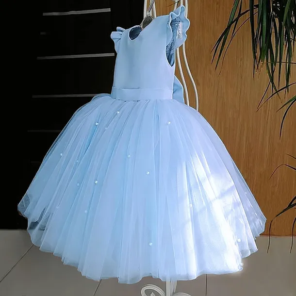 Sukienka tiulowa błękitna perełki rozmiar 86/92.