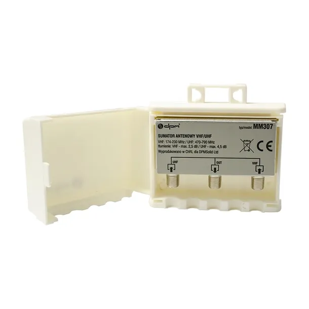 Sumator antenowy VHF/UHF. 2 wejścia (VHF, UHF), 1 wyjście. Zakres częstotliwości: VHF 174-230 MHz, UHF 470-790 MHz. Tłumienie VHF: max. 2,5 dB, UHF: max. 4,5 dB. Montaż na maszcie antenowym. Opakowanie: karton.