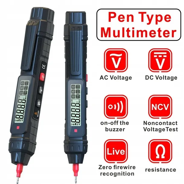 Mały ręczny automatyczny multimetr TS 20A mierzy napięcie AC i DC, rezystancję oraz funkcja NCV i Live - wykrywanie kabli pod wysokim napięciem AC.