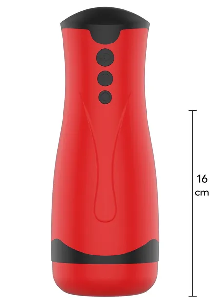 Specyfikacja: – Długość całkowita: 26 cm – Średnica insertowalna: 9 cm – Materiał: obudowa – plastik ABS | rękaw – TPE – Funkcje: ssanie + wibracje – Ilość trybów wibracji: 10 – Liczba silników: 2 – Turbo Boost: tak – Wodoodporność: IPX5 (odporny na zachlapania) – Akumulator: litowo-jonowy (ładowalny)