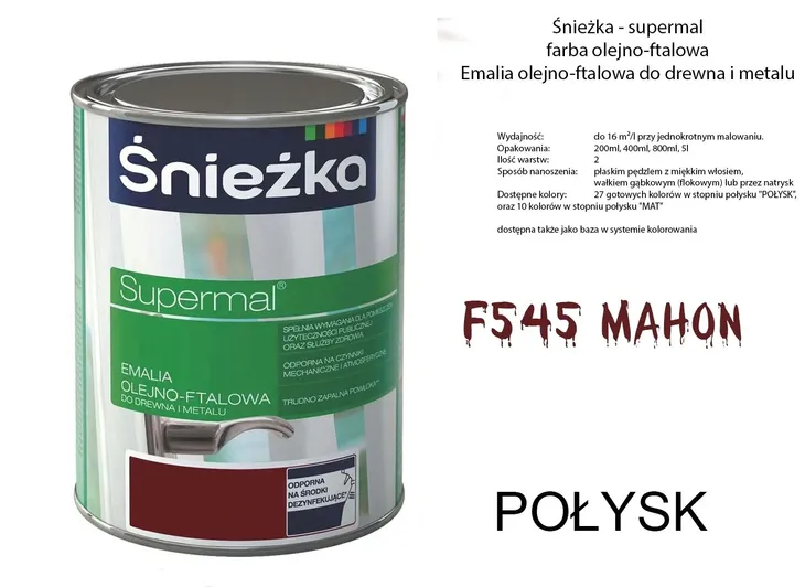 SUPERMAL Emalia olejno-ftalowa do drewna i metalu > idealna śnieżna biel > trwałe żywe kolory > nie zawiera szkodliwych związków ołowiu i chromu SUPERMAL Emalia olejno-ftalowa produkowana z wysokiej jakości żywicy ftalowej modyfikowanej olejami roślinn