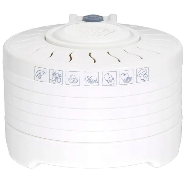 Urządzenie wyposażone jest w pięć regulowanych sit, umożliwiających optymalne rozmieszczenie produktów. Zamontowany wentylator zapewnia cyrkulację powietrza, susząc produkty w sposób zbliżony do naturalnych warunków słonecznych i wietrznych.