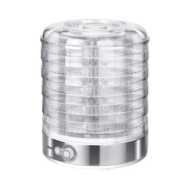 Suszarka spożywcza MSG-11 posiada regulację temperatury w zakresie od 35 °C do 70 °C. Dzięki temu z łatwością dostosujesz pracę urządzenia do przygotowanych warzyw czy owoców. Pięć przezroczystych sit pozwoli na szybką i łatwą pracę. Odległości pomiędzy sitami można regulować i dopasować do wielkości suszonych produktów.