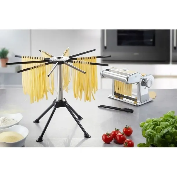 Ta suszarka jest idealna do suszenia świeżo zrobionego makaronu, a kiedy nie jest nam ona już potrzebna, może w łatwy sposób zostać złożona, aby zajmować mniej przestrzeni.