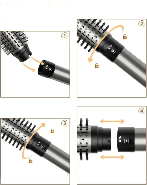 bezpieczeństwo jest dla nas priorytetem, dlatego stosujemy system sprzężenia zwrotnego NTC, bimetaliczny wyłącznik termiczny i bezpiecznik nieodwracalny. W zestawie znajdują się rękawice termoizolacyjne na wypadek oparzeń. Lokówka do włosów posiada ergonomiczne przyciski umieszczone w górnej części obudowy, co zapobiega przypadkowym kliknięciom. Dodaliśmy również nasadkę ALCI do tej suszarki-szczotki do włosów.