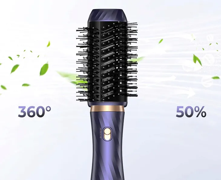 Suszarka do włosów z okrągłą szczotką pozwala uzyskać puszyste, gładkie i naturalne loki bez nadmiernego ciepła. Zestaw suszarki do włosów z gorącym powietrzem i szczotką zawiera 5 wymiennych nasadek, które umożliwiają delikatne suszenie, prostowanie, kręcenie, nadawanie objętości i masaż skóry głowy. Silny strumień powietrza z końcówki lokówki wzmacnia efekt i sprawia, że włosy automatycznie przylegają do powierzchni.