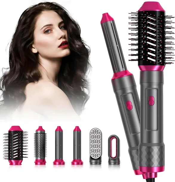Uniwersalna szczotka do stylizacji - 1 suszarka do włosów: do szybkiego suszenia i przygotowania włosów do stylizacji; 1 grzebień wygładzający: dla uzyskania gładkich, kulistych zębów, które delikatnie masują skórę głowy; 2 rodzaje szczotek objętościowych: tworzy różne puszyste efekty i może być również zwijana w naturalne fale; 2 lokówki w kierunku 30 mm: do elastycznych loków. za pomocą lokówki w Zgodnie z ruchem wskazówek zegara