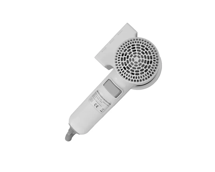 Elegancka suszarka do włosów, wykonana z wytrzymałego tworzywa sztucznego. Posiada włącznik z możliwością ustawienia mocy i prędkości wypływu powietrza. Suszarka posiada w komplecie uchwyt ścienny, który umożliwia jej zawieszenie. W uchwycie znajduje się wyłącznik, który powoduje automatyczne wyłączenie suszarki po jej odwieszeniu. Suszarka wyposażona jest w przewód zasilający z wtyczką, daje to możliwość bardzo łatwego montażu.