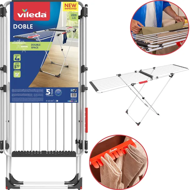 ✅ Suszarka Vileda Doble to rozwiązanie, które oferuje do 22 metrów powierzchni suszenia - idealna na małe, jak i duże pranie.