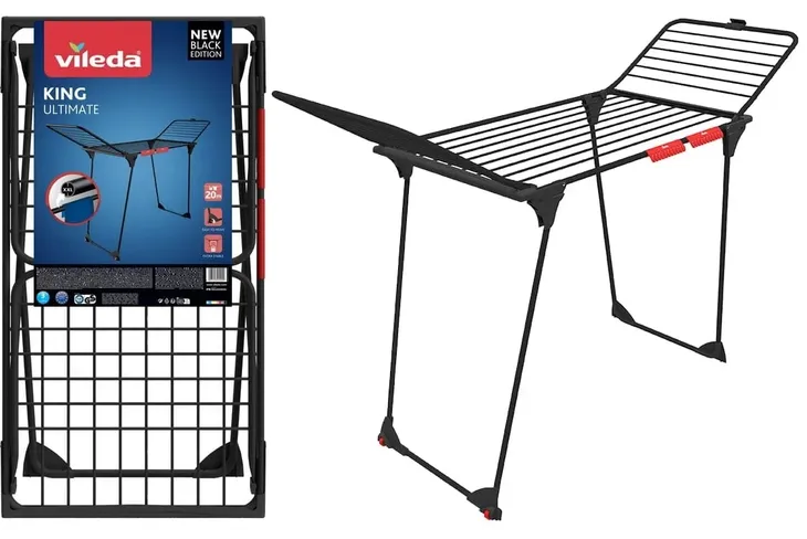 ✅Wyjątkowa stabilność, mniej zagnieceń na praniu i łatwe przemieszczanie - to wszystko z suszarką wewnętrzną Vileda King Ultimate.