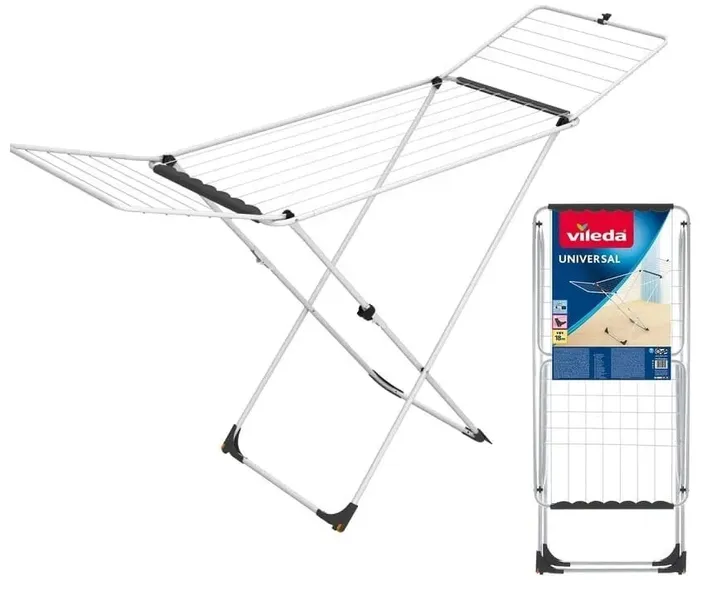 Suszarkę Vileda Universal wyposażono w nóżki zakończone kółkami, dzięki czemu łatwo jest ją ustawić w potrzebnym miejscu. Za sprawą funkcji wygodnego składania, przechowywanie suszarki nie wymaga z kolei dużo miejsca.
