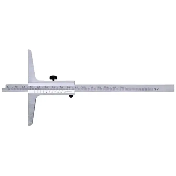 Ze stali nierdzewnej. Podziałka chromowana na mat. Zakończenia liniału i poprzeczki są hartowane. Podziałka w mm z noniuszem 1/20 mm. Z zaciskiem ustalającym. Tolerancja wg DIN 862.