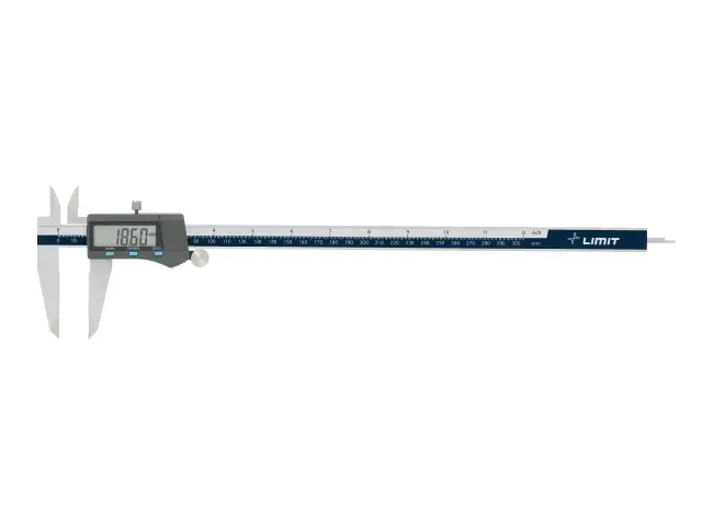Limit Suwmiarka cyfrowa jakości premium, o mocnej budowie, ze zwróceniem szczególnej uwagi na detale i wykończenie. Suwmiarka odznacza się bardzo miękkim i płynnym ruchem przesuwu szczęki ponieważ części składowe były szlifowane kilkustopniowo. Nierdzewne, hartowane i precyzyjnie szlifowane szczęki pomiarowe. Grubość szczęk 3.5 do 4 mm zapewnia wysoką stabilność. Wyświetlacz typu LCD o czytelnych cyfrach o wysokości 11 mm. 4-funkcje. Automatyczne wyłączanie. Procesor o dużej częstości aktualizacji (3 pomiary/s). Wybór wskazania w mm lub calach. Wyposażona w prostokątną wysuwkę głębokościomierza i szczęki do pomiarów wewnętrznych. Wykonanie zgodne z DIN 862. Dostarczana w etui, ze świadectwem kontroli jakości. W załączeniu bateria typu SR44.