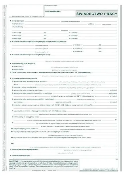 Świadectwo pracy A4 oryginał + kopia 501-1