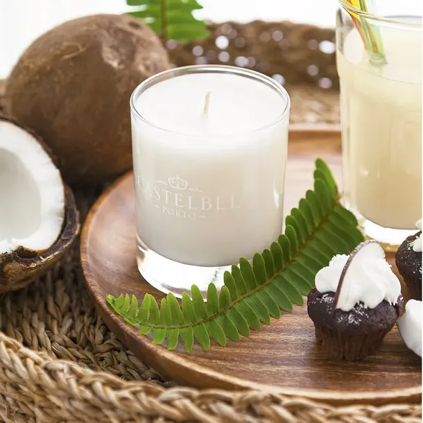 Błyskawicznie przemień swoją ulubioną przestrzeń w tropikalny wypoczynek dzięki aromatycznej świecy Castelbel Coconut. Ta ręcznie wylewana świeca wykonana jest z naturalnych składników i pachnie wyłącznie olejkami eterycznymi. Dzięki cudownie egzotycznym i ciepłym zapachom świeca aromatyczna Castelbel Ambiente Coconut wypełni Twój dom zapachem lata!
