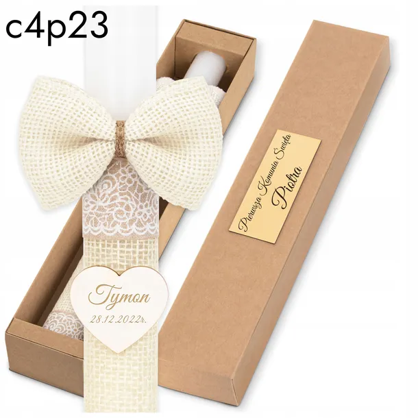 Nasz komplet (świeca. i pudełko) to doskonały sposób, aby wyrazić uczucia i uczestniczyć w tym wyjątkowym dniu. Dzięki starannemu wykonaniu i dbałości o detale, nasze świeczki są nie tylko piękne wizualnie, ale także trwałe, co sprawia, że będą doskonałym wspomnieniem z tego wyjątkowego momentu w życiu młodego człowieka.