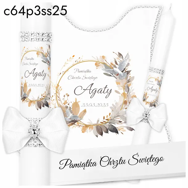 ŚWIECA NA CHRZEST BIAŁA SZATKA DO CHRZTU