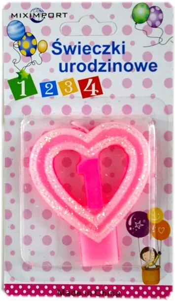 Świeczka ur. cyfra serce "1" z brokatem