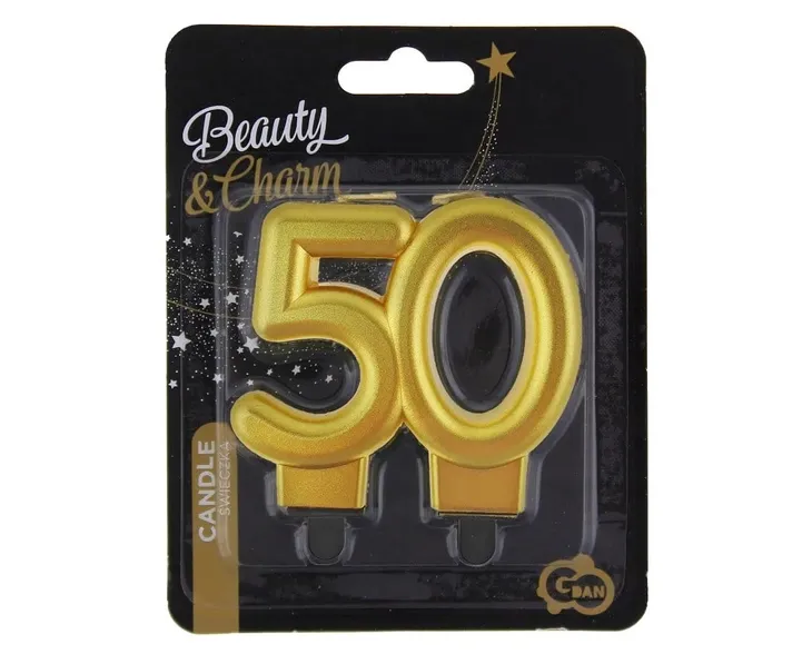 ŚWIECZKA LICZBA 50 ZŁOTA METALICZNA B&C 8CM
