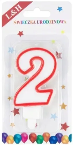 Świeczka urodzinowa cyferka dwa 2 w kolorze czerwonym