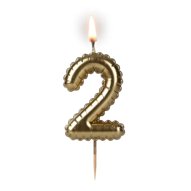 Świeczka urodzinowa cyferka „2” na patyku – złota