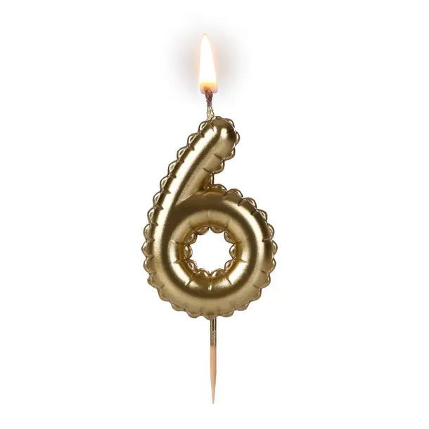 Świeczka urodzinowa cyferka „6” na patyku – złota