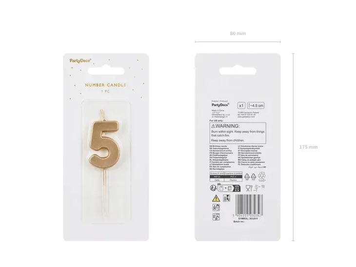 Świeczka urodzinowa Cyferka 5, 4.5 cm, złoty 1 op. / 1 szt.