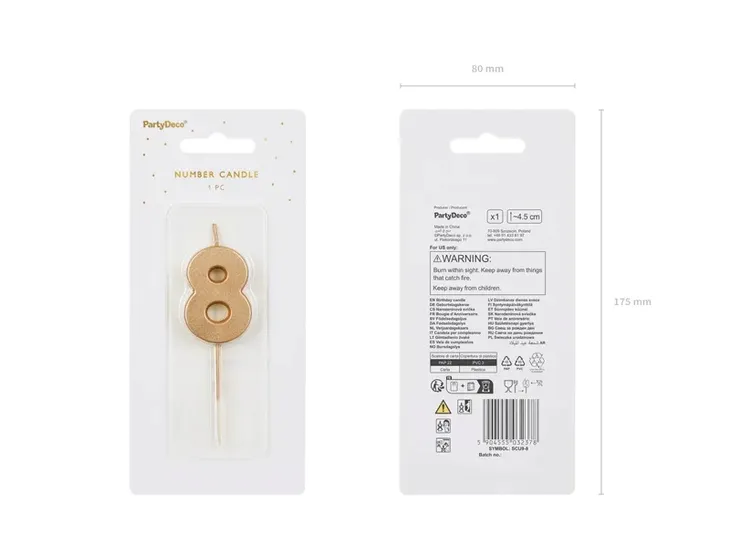 Świeczka urodzinowa Cyferka 8, 4.5 cm, złoty 1 op. / 1 szt.