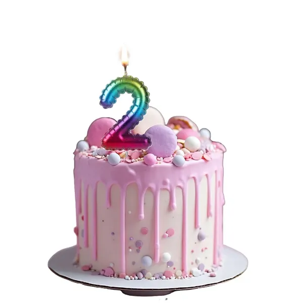Świeczka urodzinowa cyfra „2” Multikolor na patyku – dekoracja tortu 6 cm