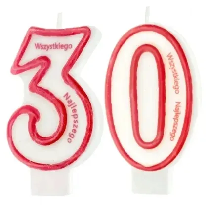 Świeczka urodzinowa cyfra 30 trzydziestka na tort