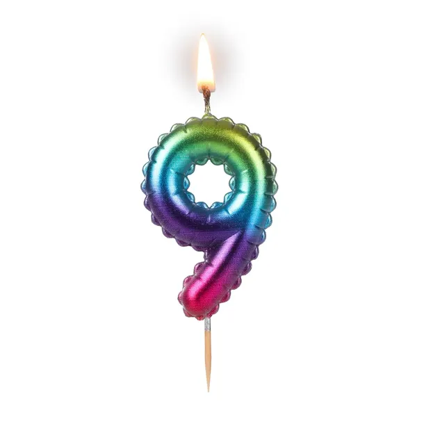 Świeczka urodzinowa cyfra „9” Multikolor na patyku – dekoracja tortu 6 cm