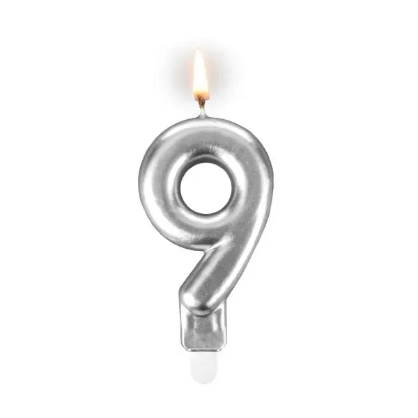 Świeczka urodzinowa cyferka „9” – srebrna sztabka | wys. 7,5 cm