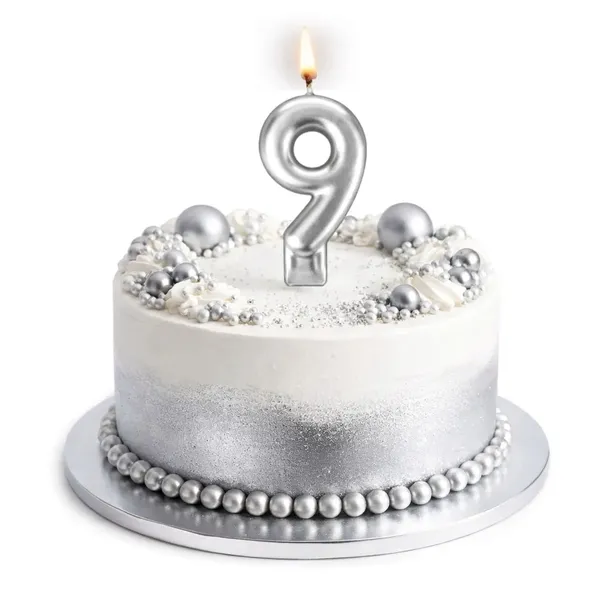 Świeczka urodzinowa cyfra 9 srebrna sztabka 7,5 cm tort JUBILEUSZ rocznica