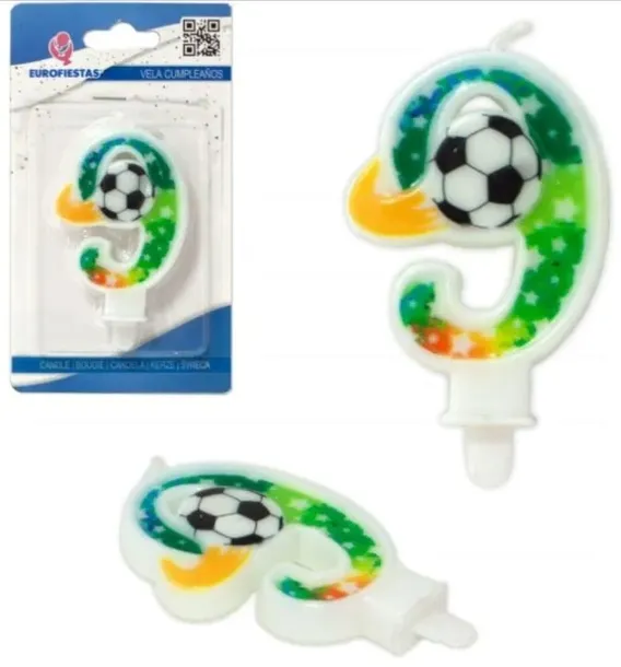 Urocze kolorowe świeczki z piłką nożną w kształcie cyfry 9, to idealny dodatek dekoracyjny na tort z okazji przyjęcia urodzinowego, dekoracja tortu z pewnością wywoła uśmiech na twarzy Twojej pociechy.